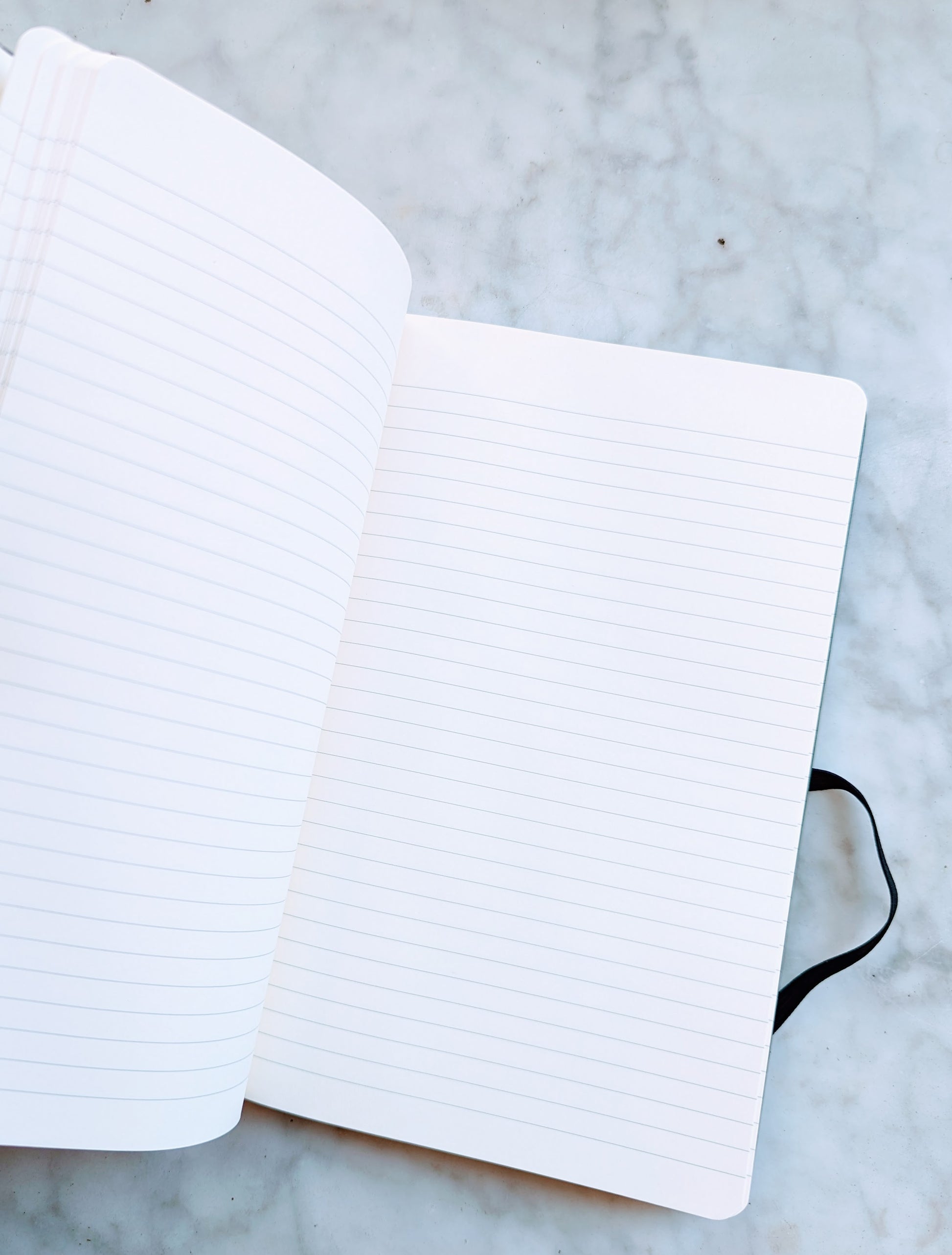 Let your love, pour onto the page in this casebound journal.  Black vegan leather cover with debossed logo, place-marking ribbon, and elastic closure.