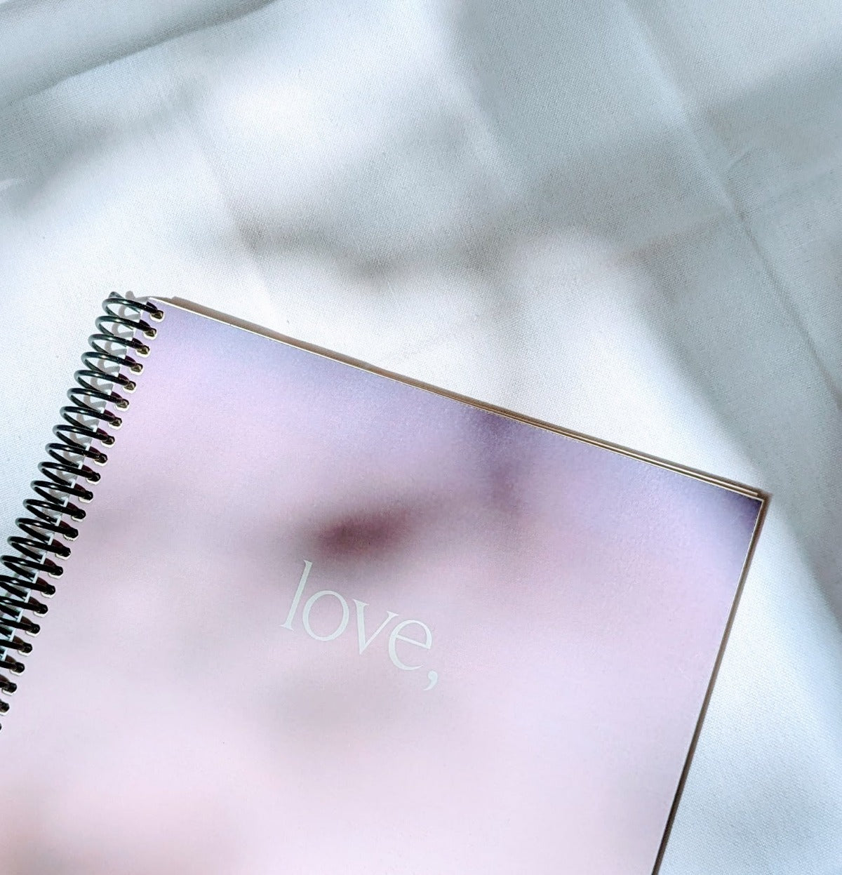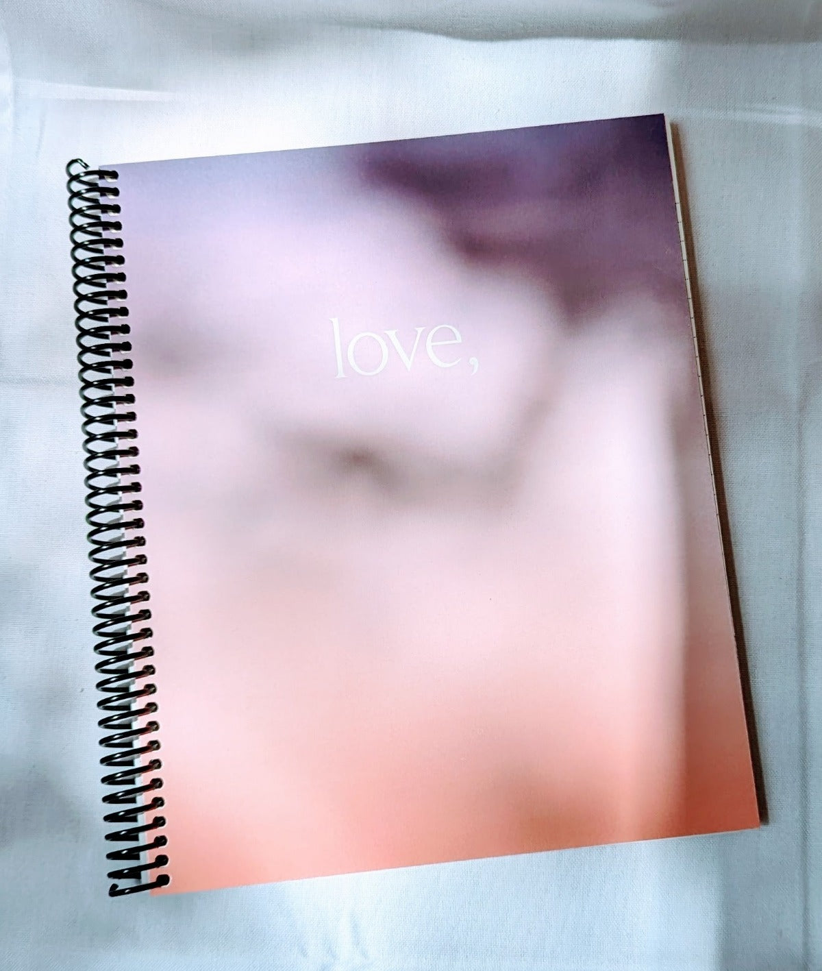 Full-size notebook for oversized dreams.  love, set on a dreamy sunset gradient-covered notebook.