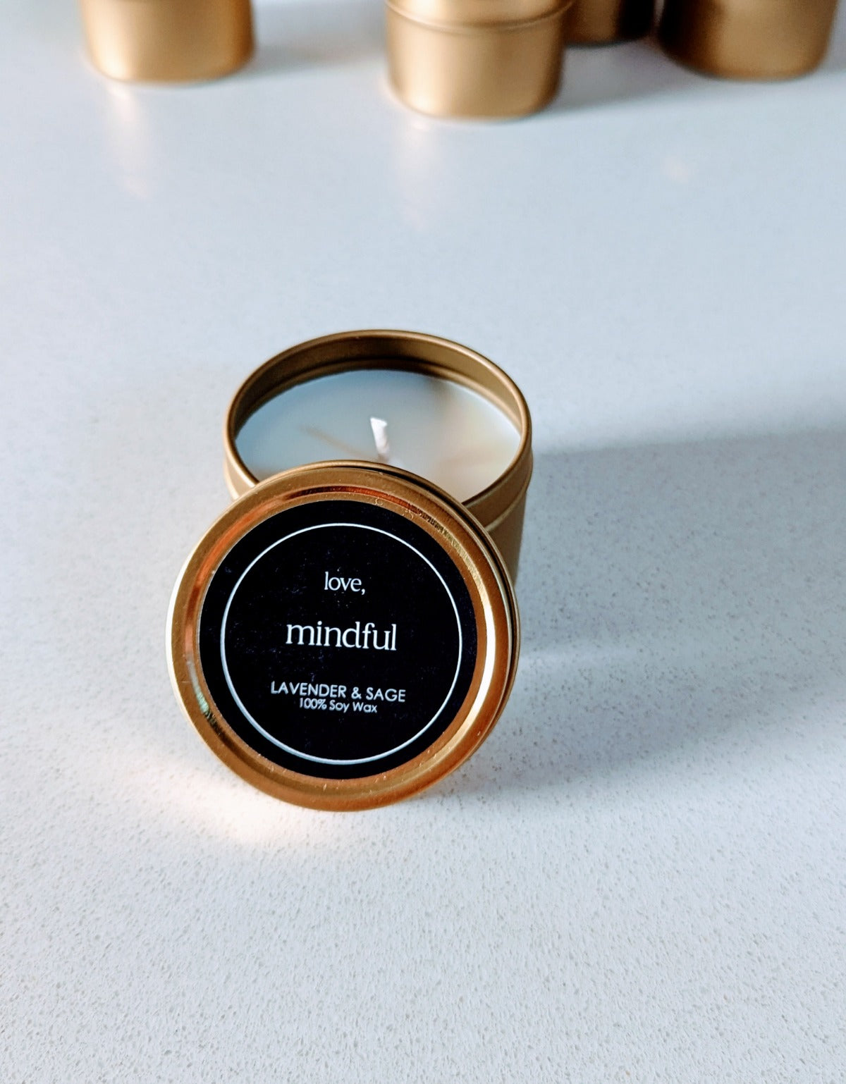 Open into mindfulness, wherever you may go, with this travel-ready tin candle.