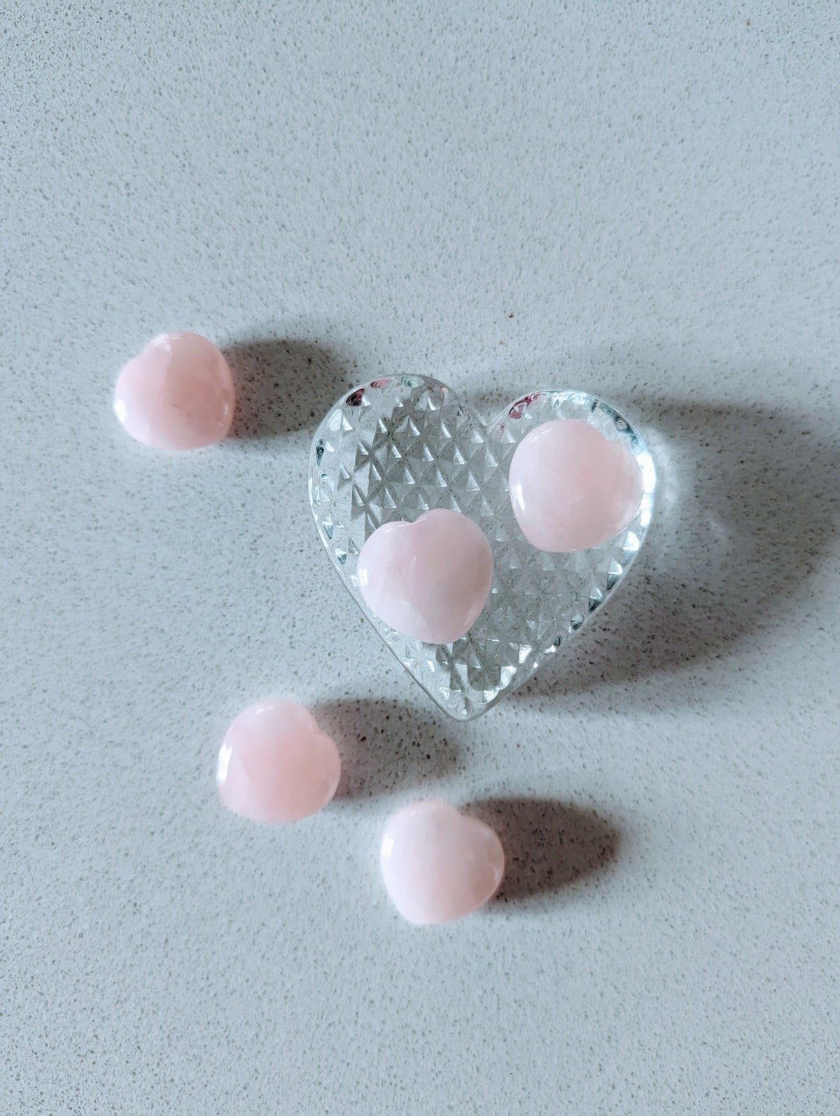 Channel self-love vibrations with this carved rose quartz heart.  Slip into a pocket or keep within reach on a desk for regular reminders of peace and purity.