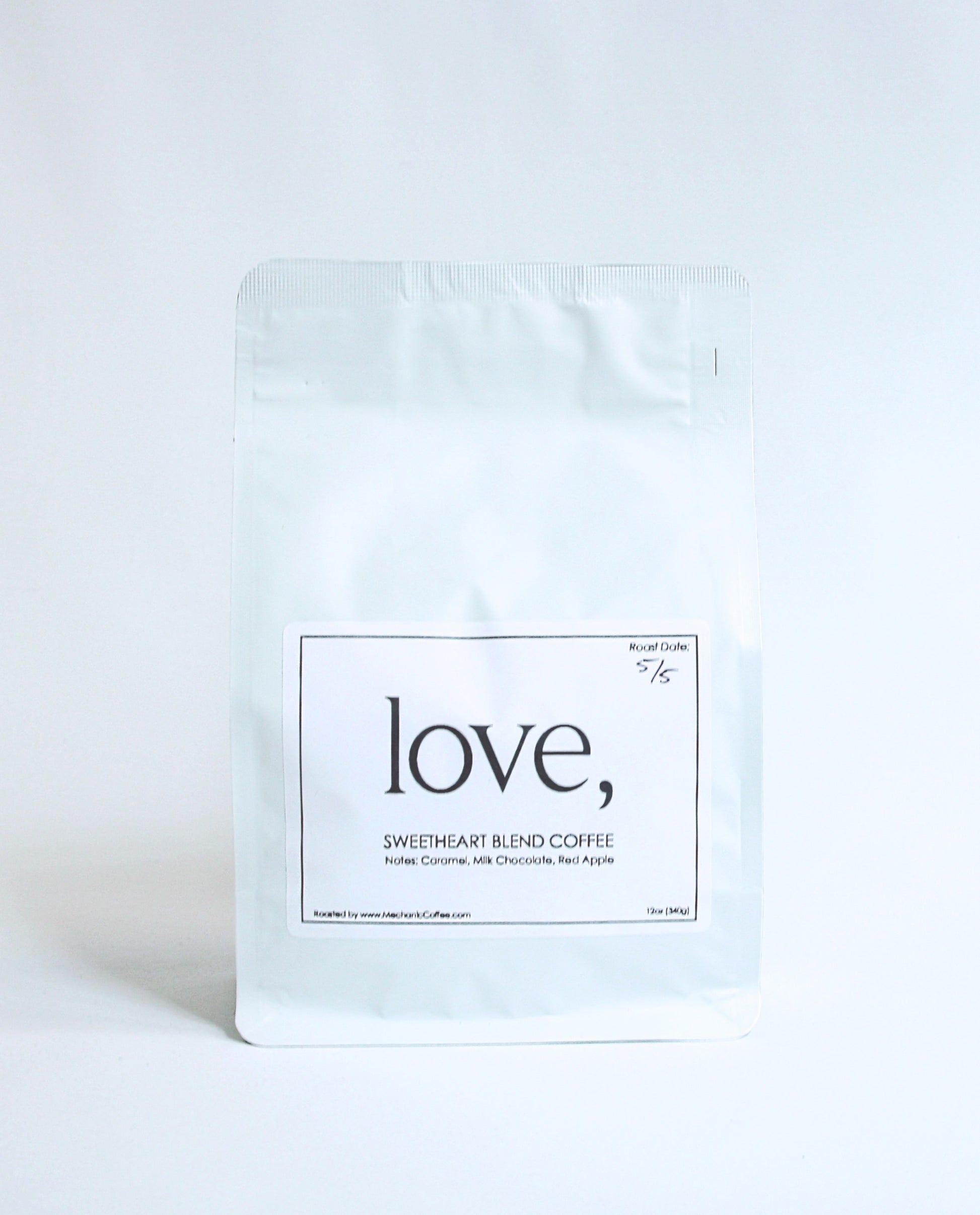 Sweetheart blend, roasted by our friends at Mechanic Coffee. 12 ounce whole bean.